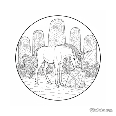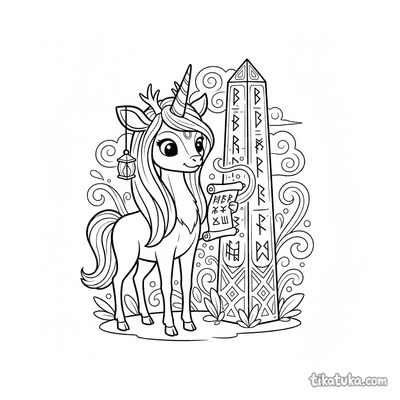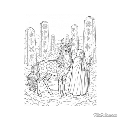 Our kirin pages include scenes of a kirin cub hiding behind a mossy monolith, a guardian resting between twin stones, and a scholar studying a runed obelisk. You'll also find kirin foals exploring monolith mazes and guiding travelers through mysterious landscapes. These black-and-white outlines are perfect for printing at home, offering a clean canvas for coloring. You can download the entire collection of 18 designs at once or color your favorite kirin scenes directly online.