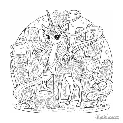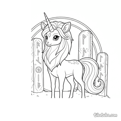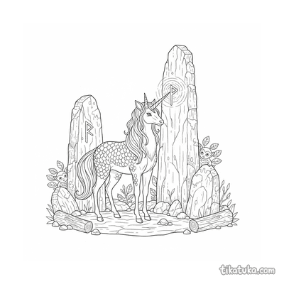 These coloring pages feature the mythical kirin, a gentle and wise creature from East Asian folklore. Each scene captures the kirin in its mystical habitat, often among ancient stones and glowing runes.