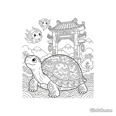 Wise Tortoise Meeting Gods at Mountain Temple Gate
