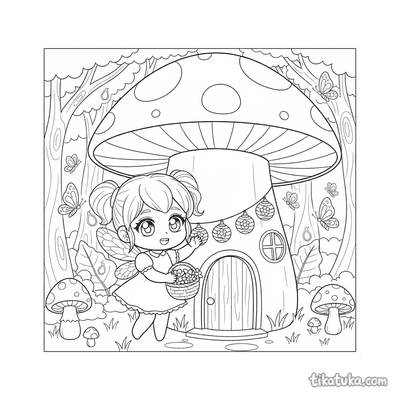 Coloring pages tagged "Mushroom House" for kids. Download and print for free.