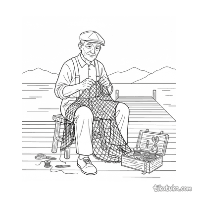 Children can color scenes of a grandfather mending a fishing net on a veranda, a zombie fisherman with a net in a sewer, and tennis players volleying at the net. You'll also find relaxing images like a capybara or a sleepy monster in a hammock net, and a girl reading in a porch hammock. All 19 black-and-white pages are available as free PDFs for easy home printing. The clear outlines are perfect for young artists to practice coloring within the lines, whether they choose to print a single sheet or the whole set at once.
