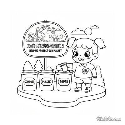 Sorting Recyclable Trash Bins at Zoo Conservation Sign