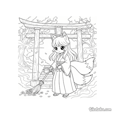 Fox Spirit Shrine Maiden Cleansing a Torii Gate