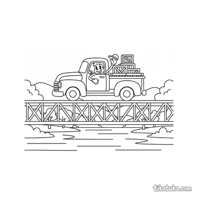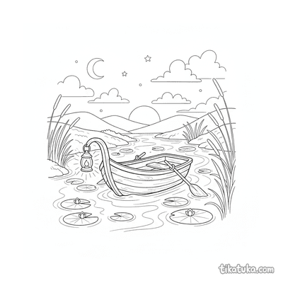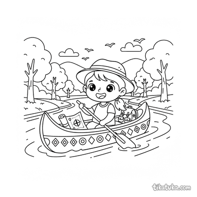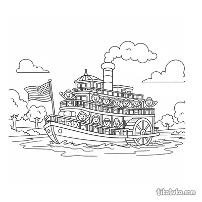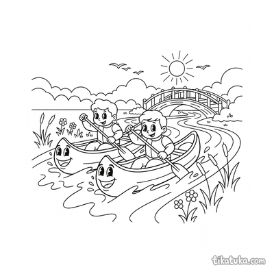 The collection features detailed scenes like a steam locomotive crossing a stone bridge, a gingerbread man riding a spoon boat, and a vintage biplane flying over rolling hills near the water. You can download and print these clean black-and-white outlines for a fun coloring activity. The pages are perfect for creating a themed river adventure, with many options to color online or in bulk for a group.
