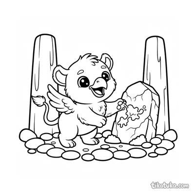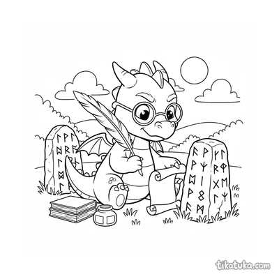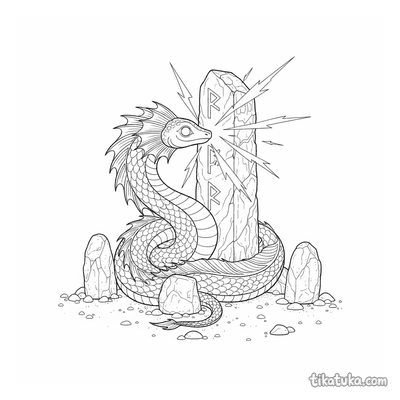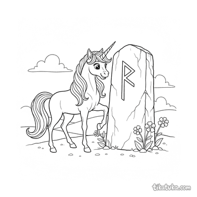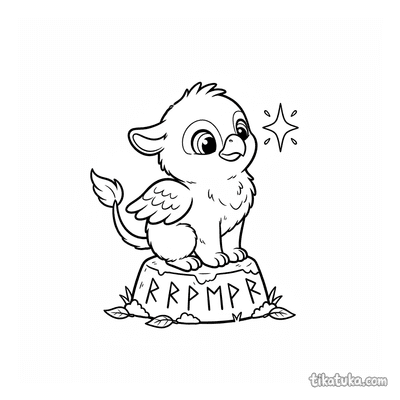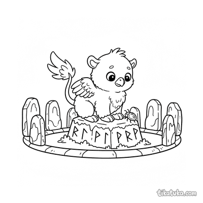 The collection includes scenes of baby griffins among runed monoliths, unicorn guardians by standing stones, and young dragon scribes tracing runestones. You'll also find phoenixes rising from obelisks, sea serpents with submerged stones, and wyverns perched on runed archways. All 89 pages are available as clean black-and-white outlines, perfect for printing at home or coloring directly on your screen. The simple, bold lines make it easy for kids to bring these magical runic scenes to life with their own colors.