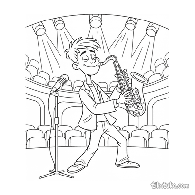 Coloring pages tagged "saxophone" for kids. Download and print for free.