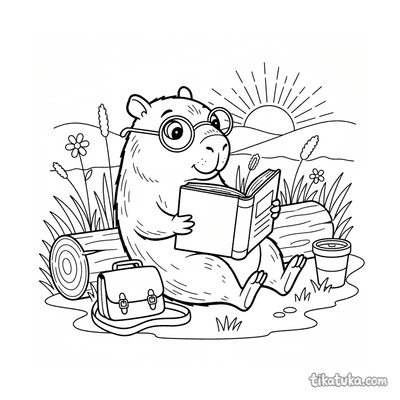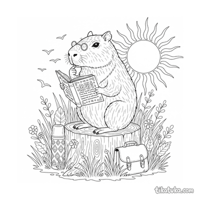 Capybara Reading a Book at Sunset