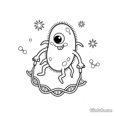 Children can color a smiling bacterium with glasses, a microbe chef cooking soup, or a curious comma-shaped vibrio reading a book. The pages also include playful scenes like a spirillum on a corkscrew slide and a bacteriophage landing on a cell. Our science coloring pages are designed with clean, bold outlines that are easy for small hands to color. You can download and print the entire collection for a classroom project or color the dancing virus with spike proteins directly on your screen.
