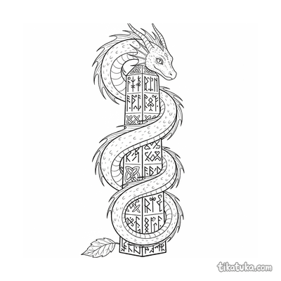Serpentine Dragon Guarding Runestone