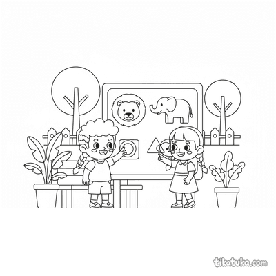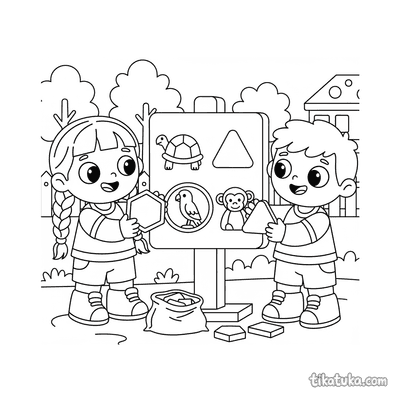 Kids Matching Shapes to Animal Silhouettes on Sign