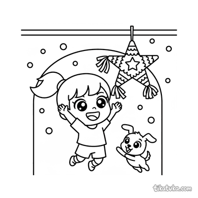 Chibi Girl Reaching for a High Piñata