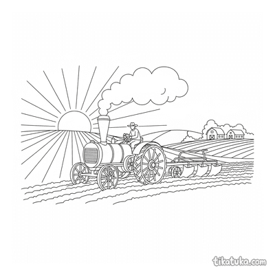 Steam-Powered Tractor with Smokestack Plowing Field at Sunrise