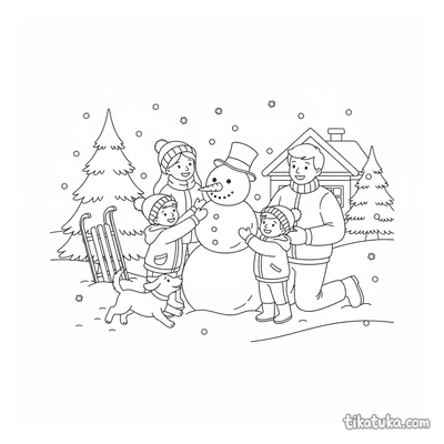 Family Building a Snowman