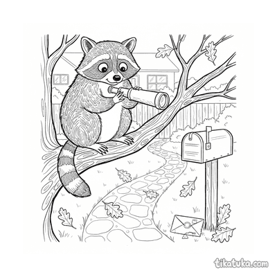 Anxious Raccoon with Spyglass in Tree