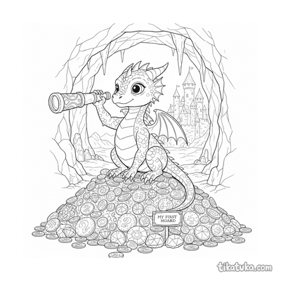 Dragon Hatchling on Treasure Hoard with Spyglass