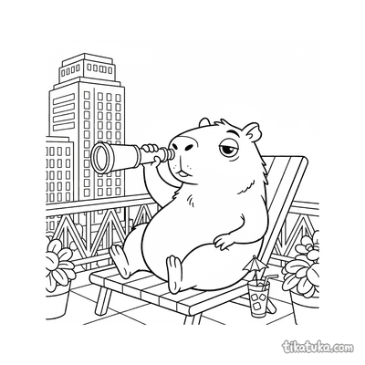 Dramatic Capybara on Balcony with Spyglass