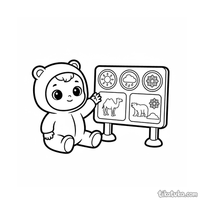 Baby Learning Weather Symbols Next to Animal Climate Sign