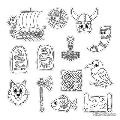 Sticker Sheet of Viking Ship and Norse Symbols