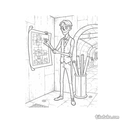 Zombie Architect Reviewing Blueprints in Sewer