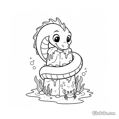 Playful Sea Serpent Coiling Around a Monolith