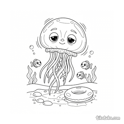 Jellyfish Drifting Past a Pool Ring with Tiny Fish