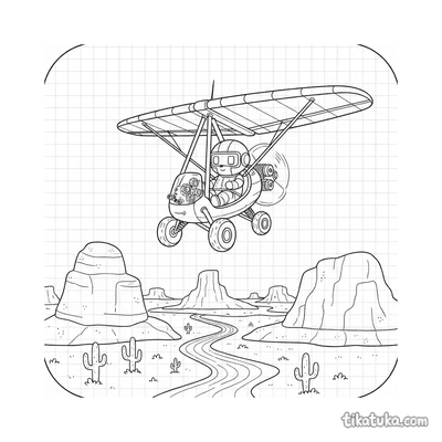 Blueprint Style Ultralight Trike Flying Over Desert Mesa