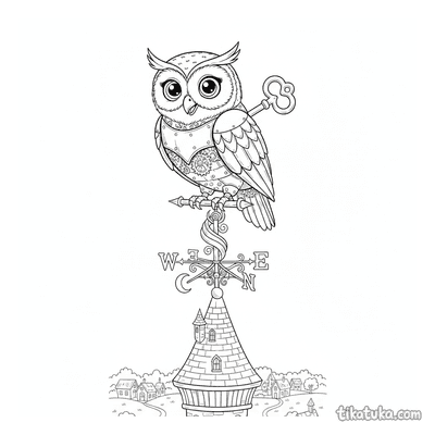 Clockwork Owl Perched on Wizard Tower Weathervane