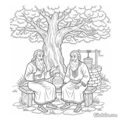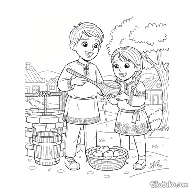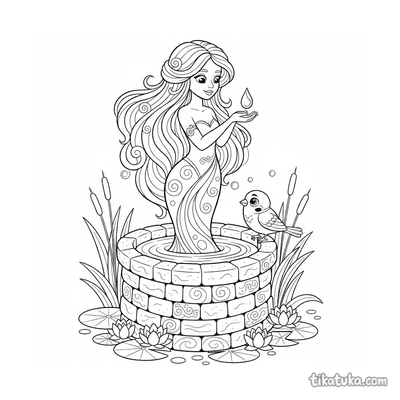 You'll find detailed scenes of a young knight at the well, a majestic peacock displaying by a fountain, and children interacting with the well, like a brother and sister carrying water. There are also imaginative depictions, such as a water spirit in the well or an elder by a magic well. All 123 pages offer clean black-and-white outlines perfect for coloring. You can easily download the entire collection for a themed activity or print individual pages for a quick and engaging project.