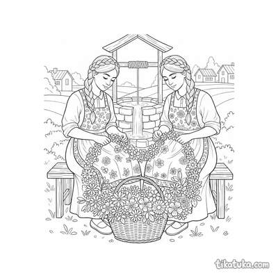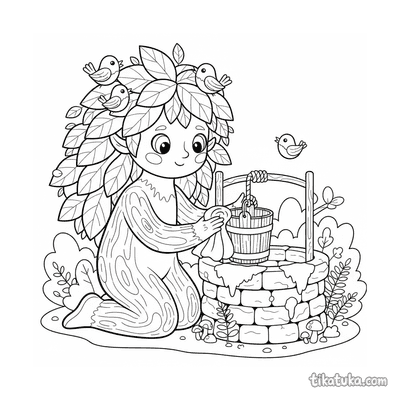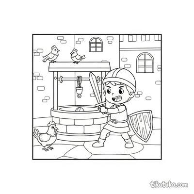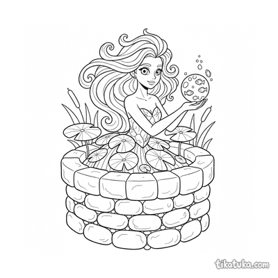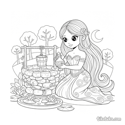 These coloring pages feature the well as a central element in various scenes and stories. The illustrations capture wells in different settings, from castle courtyards to magical gardens.
