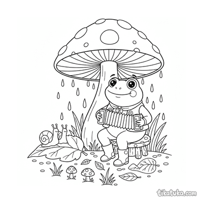 Frog Musician Under a Mushroom