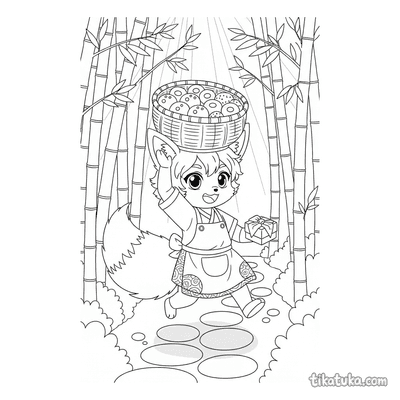 Kitsune Baker Delivering Mochi Through Bamboo Forest