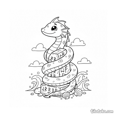 Young Sea Serpent Coiled Around Glowing Monolith