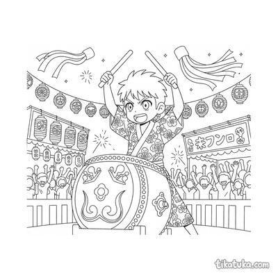Coloring pages tagged "yukata" for kids. Download and print for free.